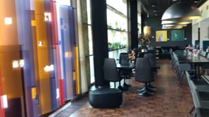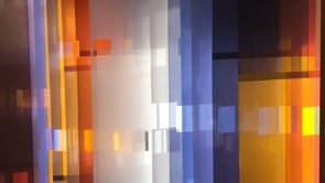 Block/ Sample4 (gemaakt in 2017) in restaurant ‘De stijl’ van het Dutch Design Hotel Artemis, Amsterdam. Geschilderde lamellen van transparante kunstzijde maken samen een architectonische compositie in de Stijl-kleuren. Hotelgasten kunnen d.m.v. twee handvaten aan de linkerzijde zelf de lamellen kantelen. Het kunstwerk vanaf buiten fotograferen is helaas niet mogelijk, aangezien er spiegelfolie op de ramen zit. Wel kunt u in de slider hieronder vroegere opnames van het werk zien, waarin de achterkant ook zichtbaar is. Materiaal: kunstzijde (polyester), acrylics van het merk Golden (verf/ medium/ vernis), UV resistent. Maat: w240 x h155 x d33 cm.
